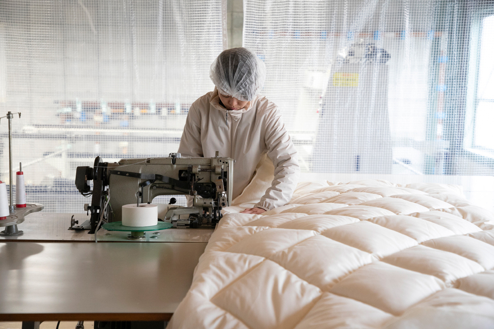 私たちの寝具は、自社工場で一枚一枚仕上げられています。