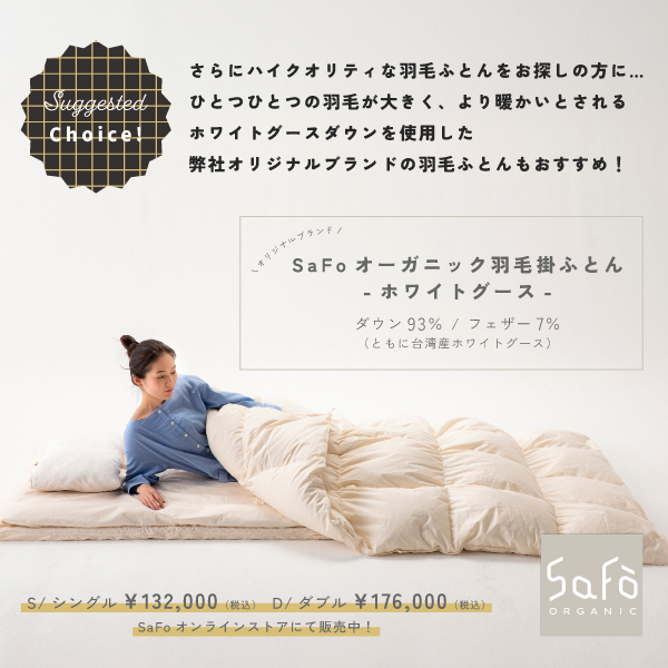 安全・品質へのこだわりは、新しい羽毛掛ふとんも同様です!